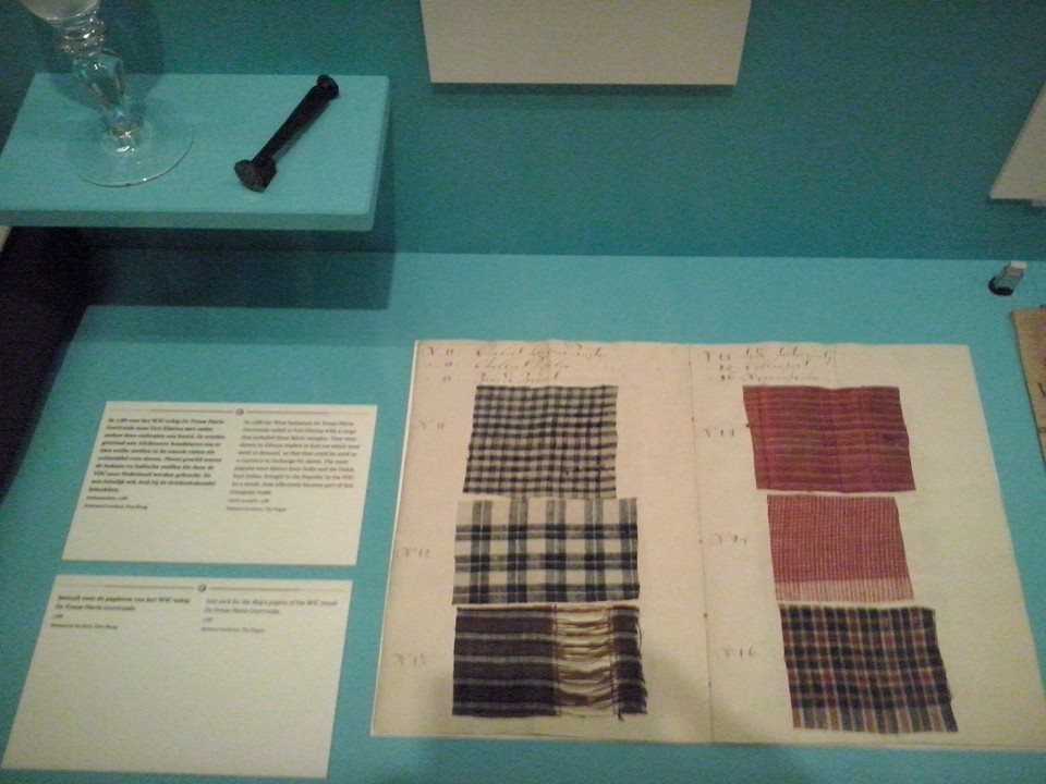 Stoffenstalen die men meebracht op het eerste deel (A’dam-Afrika) van de TAS-reis, om te peilen welke stoffen het meest in de smaak vielen bij Nigeriaanse slavenhandel. Afrikaanse modestoffen worden nog altijd gemaakt in Twente. – foto MvdZ