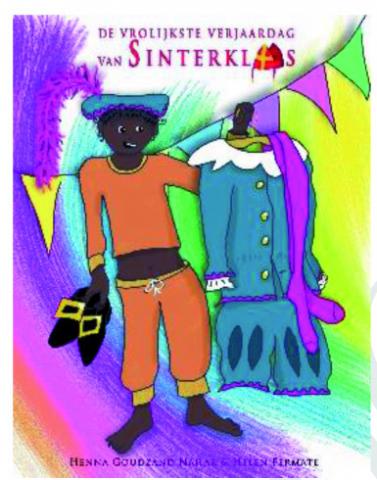 Representatie: in de tekst wordt er verwezen naar kleurenpieten, pieten zonder roetvegen en pieten met roetvoegen. In de illustraties worden de pieten (kinderen) weergegeven zonder schmink en zonder roetvegen.